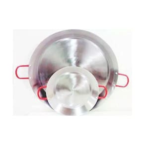 01 Paellera - Tacho de Aço Inox 2mm 9 Litros com alça Vermelha