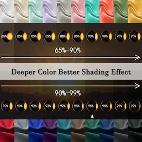 As cortinas blackout são feitas de tecido inovador de poliéster de trama tripla. Elas bloqueiam 85-99% da luz solar e dos raios UV (a cor escura funciona bem, exceto o branco)