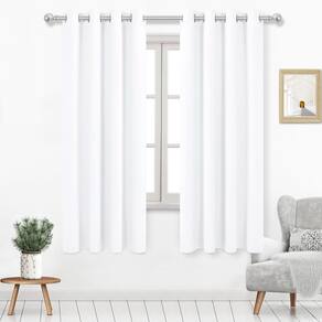 Cortinas blackout DWCN As cortinas blackout DWCN oferecem uma maneira simples, bonita, funcional e econômica de decorar janelas e paredes para quarto, sala de estar, sala de cozinha, quarto de menina ou quarto de hóspedes, pode mostrar excelentes sensações visuais. Você não ficará desapontado ao comprar nossas cortinas blackout. Alto desempenho: Nossas cortinas de escurecimento de ambiente são bem feitas e o material não é frágil, por isso é macio ao toque. Nossas cortinas estão disponíveis em uma variedade de cores e tamanhos, você pode ter muitas opções para o que deseja. O efeito de sombreamento varia de acordo com os tons da cor, quanto mais escura a cor, melhor o efeito. Pode proporcionar mais propício ao seu sono e privacidade de vida. As coisas clássicas duram para sempre. Para se adequar ao seu estilo integral de decoração de casa, mas também apresentar alguns estilos de decoração distintos, projetamos nossas cortinas de maneira simples, elegante e clássica. Anéis resistentes à ferrugem na parte superior, ajustam-se à maioria das hastes de cortina normais, fáceis de instalar ou remover. As rugas desaparecerão após serem penduradas por alguns dias. Fácil de cuidar, proporcionando uma maneira mais conveniente de economizar tempo na amamentação. A satisfação do cliente é o nosso maior prazer. Se você tiver outras dúvidas, a tempo. Faremos o nosso melhor para resolvê-lo para você. Desejamos que você tenha uma boa experiência de compra! - Tecido de cortinas com bloqueio de luz 50% feito de 100% poliéster importado de alta qualidade. Seu pacote incluirá 2 painéis de cortina brancos puros e cada painel mede L132 x C163 centímetros - Acabamento de qualidade, bainha inferior de 1,5 cm. Cada painel de cortina é construído com alguns ilhós de prata antiferrugem (diâmetro interno de 4 cm) - Estas cortinas brancas puras são tecidas com uma camada tripla e tecido resistente. Ao contrário de outras cores, a camada intermediária desta cor usa fio branco. Então eles parecem mais brancos do que brancos acinzentados ou roucos. - As cortinas brancas puras podem bloquear apenas cerca de 50% da luz solar, não escurecem. Os painéis de cortina de escurecimento do ambiente são pesados o suficiente para reduzir algum ruído, para proteger sua privacidade e criar um bom ambiente de trabalho e sono para você. - Lavável na máquina em água fria, secar na máquina, ciclo de lavagem único, sem alvejante. Passado a ferro a baixa temperatura, se necessário.