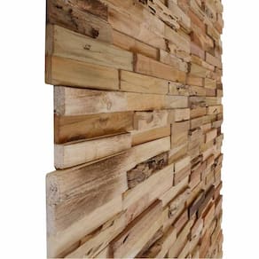 O revestimento é feito de madeira de teca parcialmente colorida de acordo com a aparência natural moderna, aumentando sua aparência rústica semelhante a uma pilha de tábuas. Estes belos painéis de parede decorativos são muito fáceis de instalar.