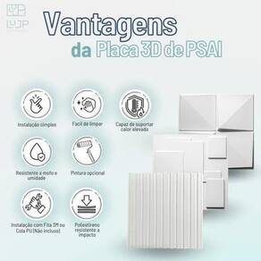 Paineis Placas Revestimento 3m2 Pedra Pvc 50x50 3d Kit 12 Quantidade: 12 Placas Material: Poliestireno Alto Impacto Modelo: Ripa Cor: Brancas com acabamento fosco e corte a laser. Espessura: 0.5mm Tamanho: 50x50 Nossas placas de poliestireno são exclusivas com corte a laser, oferecendo um acabamento fosco único no mercado, totalmente diferente do que você já viu. Fáceis de instalar, resistentes e adaptáveis, nossas placas transformam seus espaços com praticidade e estilo Instalação fácil, sem necessidade de . Material resistente, com relevo que não amassa nem afunda. Instalação limpa, sem quebra-quebra. Ideal para paredes com umidade, mofo, textura, madeira e azulejo. Perfeito para ambientes internos e externos. Lavável para manter sempre como novo. de durabilidade por 10 anos. Dispensa pintura, economizando tempo e dinheiro. Fácil instalação com fita 3M, cola de contato ou cola PU. Cortes precisos feitos a laser para um resultado impecável. Transforme seu espaço com praticidade e estilo Área externa: Instalação com cola de contato e pintura obrigatória com tinta a base de água Área interna: instalação com fita dupla face, cola pu ou cola de contato e pintura opcional. A cor das placas nas fotos é igual à cor real do produto Resposta: As placas são na cor branca. Porém você pode aplicar tinta a base de água na cor de sua preferência, após a instalação. Posso colar as placas na parede com textura Resposta: Sim, você pode colar as placas em paredes com textura, desde que não seja chapiscado, mas é importante usar um adesivo de montagem adequado para garantir uma fixação segura. Qual é o peso de cada placa As placas acompanham fita dupla face Resposta: Não, você pode instalar com Cola Pu ou fita dupla face, ambas opções são vendidas separadamente. As placas se encaixam conforme o vídeo Resposta: Sim, nossas placas são projetadas para se encaixar de forma fácil e eficiente, conforme mostrado no vídeo demonstrativo. Preciso de uma quantidade maior do que a disponível no anúncio. Posso encomendar mais Resposta: Sim, se precisar de uma quantidade maior do que a disponível, basta solicitar e nós calculamos a quantidade de acordo com as medidas fornecidas e indicamos outro anúncio correspondente para efetuar a compra. Posso usar as placas 3D em áreas externas descobertas Resposta: Sim, nossas placas são adequadas para uso em áreas externas descobertas, desde que instaladas corretamente e de acordo com as orientações do fabricante. Elas são resistentes a condições climáticas, mas recomendamos consultar as especificações de cada modelo para garantir a durabilidade ideal.
