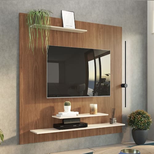 O Painel para TV Chicago é o produto certo para sua sala de estar, com estilo moderno produzido com material de qualidade possui 3 prateleiras e espaço para TV até 65 polegadas. Produzido em MDP com ótimo acabamento vai deixar seu ambientes mais elegante. Produto Montado: Sim Acabamento: Pintura UV Acabamento da Prateleira: Pintura UV Ambiente Principal: Sala de Estar codigo_ean: 7900288109170 Complexidade da Montagem: Média: pode ser montado por mais de uma pessoa e/ou necessite de maior conhecimento para montagem Cor: Freijo/Off Wheite Cor da Prateleira: Cinza Cor do Produto: Freijo/Off Wheite Cor Flex: NÃO Cor Interna: Freijo Escala de Brilho: Semi-Brilho Escala de Brilho da Prateleira: Semi-Brilho Espessura do Painel: 15 cm Ideal para TVs até (Polegadas): 65 Itens Inclusos: 1 Painel, Kit Ferragem e Manual de Montagem Linha ou Coleção: Paineis Manual de Montagem e Instalação: https://product-hub-prd.madeiramadeira.com.br/984216/documents/54a0affc-e7f9-4f42-91c6-15ce2ec566362782829400017436982927665.pdf Marca: IRM Material da Prateleira: MDP Material Principal: MDP Montagem Flex: NÃO Necessita Montagem: Sim Origem do Produto: Nacional Peso: 38 kg Peso Máximo por Prateleira: 1 kg Possui Espelho: Não Possui iluminação: Não Possui Passa Cabos: Não Possui Pés: Não Possui Portas: Não Possui Tomada: Não Possui Vidro: Não Quantidade de Nichos: Não Recomendações de Uso, Manutenção e Limpeza: Para limpeza utilize pano macio levemente umedecido em água seguido de pano seco. Suporte de TV Universal Incluso: Não