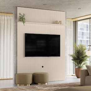 Produto desenvolvido para ser fixado na parede. O televisor deve ser fixado no painel. Painel em MDF frisado (baixo relevo), estrutura com chapas em MDP e MDF de 1,2 e 2,5cm.Prateleira para Objetos Decorativo; Painéis em MDP 1,2 e 2,5cm; Junção com perfis dourados e fixação com parafusos. Produto Montado: Sim codigo_ean: 7900288051301 Complexidade da Montagem: Média: pode ser montado por mais de uma pessoa e/ou necessite de maior conhecimento para montagem Cor: Off White Cor do Produto: Off White Itens Inclusos: 1 Painel para TV Manual de Montagem e Instalação: https://product-hub-prd.madeiramadeira.com.br/975674/documents/847ee714-3f96-464d-8681-0476fabda075264894482617379867997036.pdf Marca: Madetec Material Principal: MDF/MDP Necessita Montagem: Sim Peso: 55,5 kg Peso Máximo por Prateleira: 5 kg Possui Pés: Não Possui Portas: Não Possui Vidro: Não Recomendações de Uso, Manutenção e Limpeza: "Para a limpeza utilizar um pano limpo e seco. Não limpar com produtos abrasivos ou escovas; Não deixar exposta à luz do sol diretamente pois isso irá diminuir a vida útil do produto; Este produto Não é recomendado Para ambientes externos onde possa receber chuva." Sistema de Montagem: Girofix
