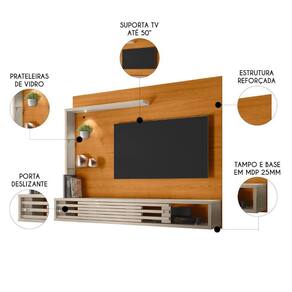 O Painel 50 Pol e Bancada Suspensa Keren M01 Off/Cinamomo, da Mpozenato, combina sofisticação e funcionalidade para transformar sua Sala de Estar.