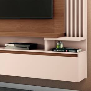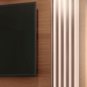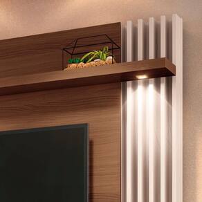O Painel Suspenso Para suporta de até 55 polegadas, sobe o tampo de 40mm ou fixada no painel, nas laterais possui um ripado decorativo em MDF 15mm que confere elegância e sofisticação ao ambiente. Além disso, conta com duas luminárias LED que realçam e valorizam o design do mobiliário, criando um efeito de iluminação indireta. A prateleira superior é engrossada com espessura de 37mm, garantindo maior resistência e durabilidade. O Home Suspenso também possui duas portas basculantes com dobradiças metálicas, que oferecem praticidade e organização para guardar objetos. O produto é produzido em MDP/MDF, e tem acabamento em pintura UV que garantem mais qualidade e durabilidade para o móvel.