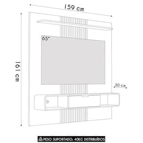 Painel 65 Pol e Bancada Suspensa 158cm Lisboa Off/Naturalle - Bechara