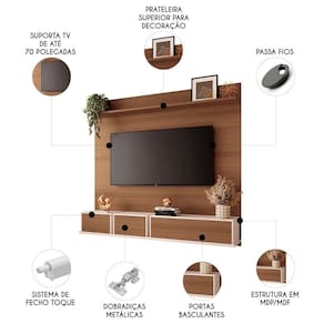 O Painel 70 Pol 180cm Bancada Suspensa Mone H01 Off/Castanho, da Mpozenato é composto por módulos e linhas retas, oferecendo uma estética contemporânea e clean.