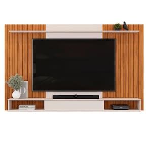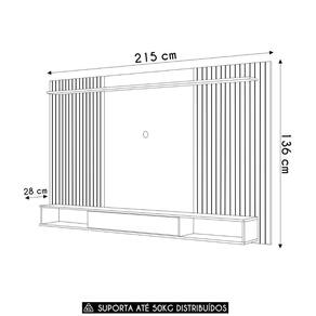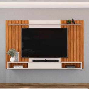 Com capacidade para suportar TVs de até 70 polegadas, este Painel permite que você escolha a ideal, garantindo uma experiência de entretenimento completa e sem preocupações. Sua estrutura é fabricada com peças de MDP/MDF de 12mm/15mm e acabamento em pintura UV, proporcionando alta resistência e durabilidade. A bancada suspensa com porta deslizante oferece nichos para armazenar seus itens e acomodar eletrônicos de forma harmoniosa. Conta ainda com uma prateleira superior que é ótima para exibir objetos decorativos, seu design contrasta elegantemente com os frisos do Painel Ripado. Também dispõe de passa-fios para facilitar a organização e ocultar os cabos, preservando uma estética clean em seu ambiente.