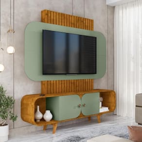 Além dos dois nichos laterais para acomodação de aparelhos e das portas, o painel é ideal para de até 75 Polegadas, o suporte para acompanha o painel, tornando completo.