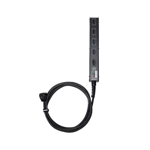 Painel Ac Nbr 20a 10 Metros Pac 520 Wireconex PAC 520 - Régua para conexão de energia 5 Tomadas NBR 14.136-20A Cabo PP 3x2,5mm com 10m de comprimento WC325 Plug NBR 14.136-20A Painel em metal formato calha Pintura Epóxi preta VDR Voltage Dependent Resistor de tensão máxima de 275VAC para proteção contra surtos de tensão 2 Fusíveis de Proteção 20A-20mm LINHA e NEUTRO Tensão de alimentação 127V - 220V Voltímetro 127/220VAC Corrente Elétrica máxima do conector de entrada: 20A Corrente Elétrica dos conectores de Saída: 20A Montado com placa de circuito impresso