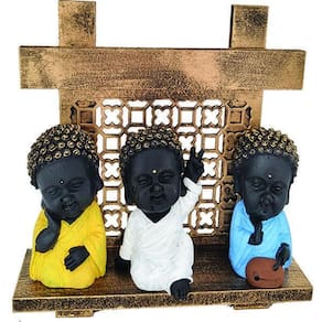 Este Kit contém 4 peças: - 3 Mini Buda Cores de 10 cm de altura - 1 Aparador exotérico vazado no tamanho de 18cm de altura x 20cm de largura x 7cm de profundidade