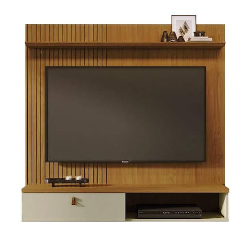 O Painel Íris da 7 Decor oferece design elegante e funcionalidade inteligente em um formato compacto. Ideal para salas menores ou ambientes com estilo contemporâneo, ele conta com porta basculante, acabamento dourado fosco e detalhes que simulam couro natural, trazendo requinte e personalidade ao espaço.