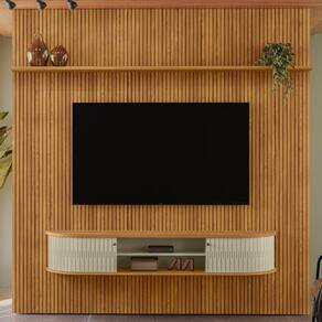 Painel Bancada Tv 75 Pol 245x238 Cm Bugatti Cumaru Opala Madetec Cumaru Opala
