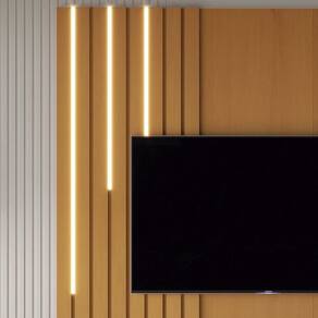 Seu tampo usinado e painel com linhas limpas proporcionam um visual moderno e harmonioso, perfeito para salas de estar, quartos ou espaços integrados.
