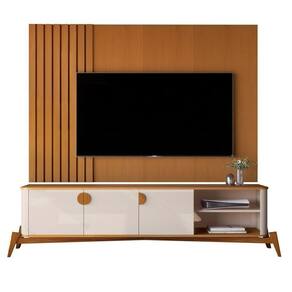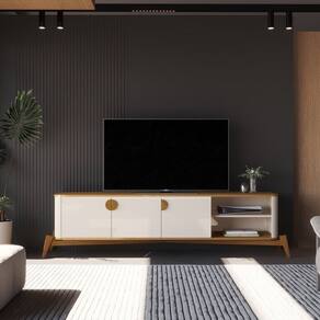 O painel ripado Boto é em MDF de 12mm e não acompanha suporte para TV, a bancada contém os cantos arredondados exclusivos da linha, base e tampo em MDF de 15mm, portas em MDF de 15mm com dobradiças, além dos pés e puxadores em madeira maciça. Acabamento: Pintura UV Altura do Conjunto: 136 cm Ambiente Principal: Sala de Estar codigo_ean: 7900288102850 Cor: Marrom/Offwhite Cor do Produto: Marrom/Offwhite Informação Complementar: 1x Rack para TV até 75 Polegadas 140cm com Puxador e Pés em Madeira Maciça Buriti OffWhite/Marrom Largura: 195 cm Altura: 54,5 cm Peso: 33,5 kg Profundidade: 43 cm Necessita Montagem: Sim
