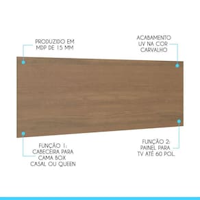 Painel Cabeceira Selene Box Queen Mdp Carvalho Menu Móveis Carvalho A Cabeceira Painel Selene e um movel util e versatil, perfeito para otimizar o seu ambiente e deixar ainda mais aconchegante. Pode ser utilizado como cabeceira para cama box casal/queen ou como painel de . Por ser um movel versatil, ele pode ser utilizado em diversas funcoes e ambientes. A Cabeceira e produzida com materiais de excelente qualidade, garantindo a durabilidade e vida util. Conheca a nossa linha de Quarto Modulado Selene, voce vai se surpreender. O melhor em moveis no design atual aliando conforto, qualidade e otimos precos, so na Menu Moveis! Caracteristicas: Referencia: 6001 Material: MDP de 15 mm Acabamento: Pintura UV na cor Carvalho Funcao 1: Cabeceira Cama Box Casal e/ou Queen Funcao 2: Painel para ate 60 Polegadas
