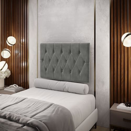 Características do Produto: Madeira de eucalipto proveniente de reflorestamento Fixação com grampos galvanizados Espuma Poliuretano D20 Revestimento: Sued Cor: Cinza Tamanho: Solteiro Fixação na parede via suportes metálicos. Embalagem: papelão ondulado, malha e plástico Garantia de 3 meses contra defeitos de fábrica.