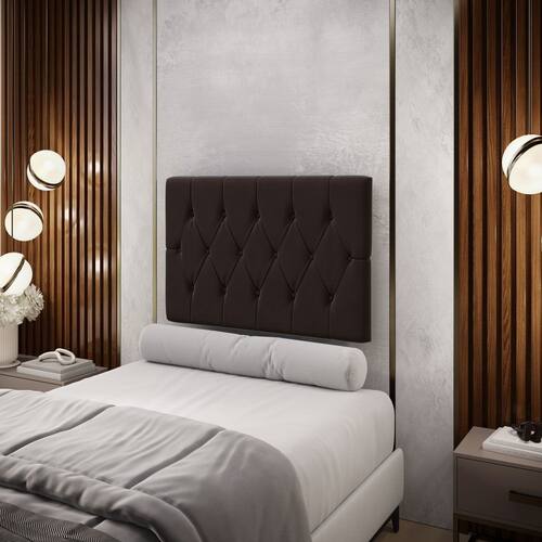 Características do Produto: Madeira de eucalipto proveniente de reflorestamento Fixação com grampos galvanizados Espuma Poliuretano D20 Revestimento: Sued Cor: Marrom Tamanho: Solteiro Fixação na parede via suportes metálicos. Embalagem: papelão ondulado, malha e plástico Garantia de 3 meses contra defeitos de fábrica.