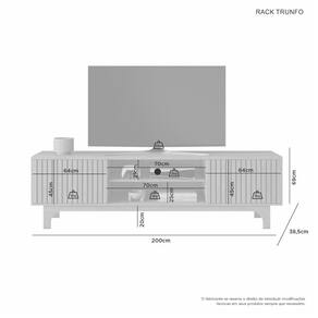 Dimensões do Rack: Altura: 69cm Largura: 200cm Profundidade: 38,5cm