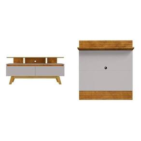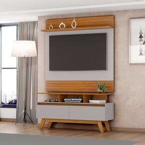 1x Rack para TV até 50 Polegadas 2 Portas 2 Prateleiras Pés em Madeira Maciça Rubi Naturalle/Off-White Largura: 120 cm Altura: 65 cm Peso: 21,47 kg Profundidade: 35,8 cm Necessita Montagem: Sim