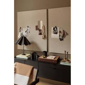 Painel com base em madeira mdf 6mm para dar sustentação. Cortiça 6mm para melhor aderência aos alfinetes. Tecido linho De estofamento, não marca os furos dos alfinetes, tecido encorpado não fica transparente. Possui ganchos no verso para pendurar como um quadro.