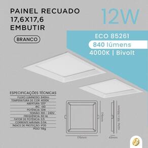 Painel De Embutir Led Branco Recuado 17,6X17,6 Bivolt 12W