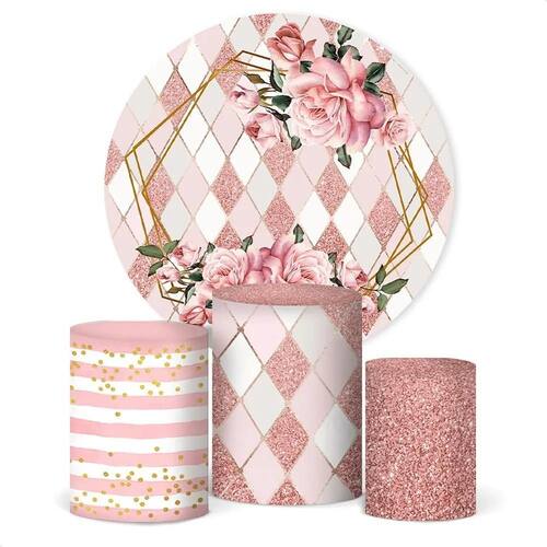 Painel De Festa E Capa Cilindro Decora Flores Geométrico Ros
