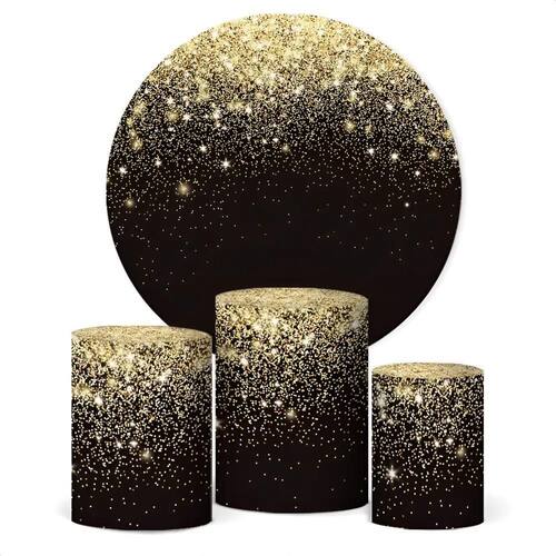 Painel De Festa E Capa Cilindro Decoraç Glitter Dourado Pret