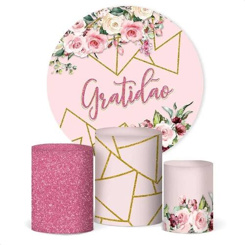Painel De Festa E Capa Cilindro Decoração Sub Gratidão Flora
