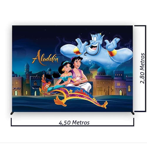 Painel de Festa Retangular Aladin Diversas Medidas - Fera Print - Medidas do Painel: Painel Retangular 4,50x2,80 metros