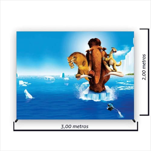 Painel de Festa Retangular Era do Gelo Várias Medidas - Fera Print - Medidas do Painel: Painel Retangular 3,00x2,00 metros