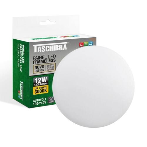 Painel de Led Frameless Redondo Embutir/Sobrepor 12W Bivolt Taschibra 3000K Luz Quente