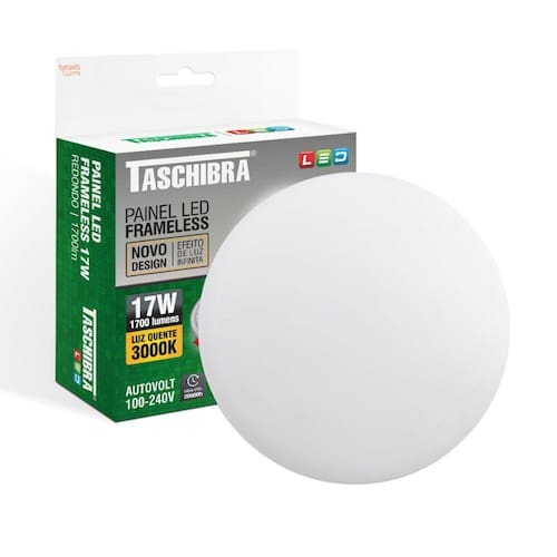 Painel de Led Frameless Redondo Embutir/Sobrepor 17W Bivolt Taschibra 3000K Luz Quente