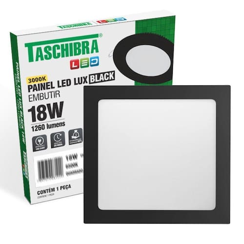 Painel de Led Quadrado Embutir 18W Preto Bivolt Taschibra 3000K Luz Quente
