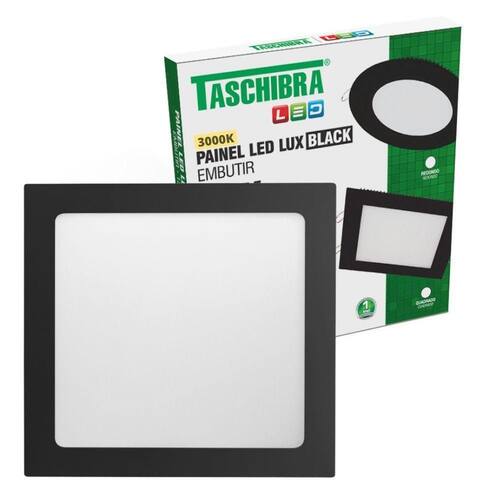 Painel de Led Quadrado Embutir 24W Preto Bivolt Taschibra 3000K Luz Quente