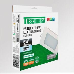 Painel de Led Quadrado Embutir 6W Bivolt Taschibra 6500K Luz Fria