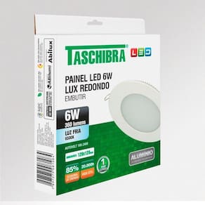 Painel de Led Redondo Embutir 6W Bivolt Taschibra 6500K Luz Fria