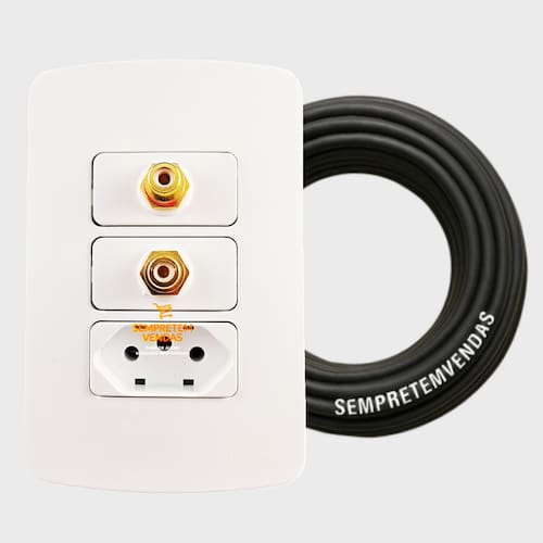 Painel de Parede 4x2 Tomada 10A e Cabo de Áudio 15 Metros