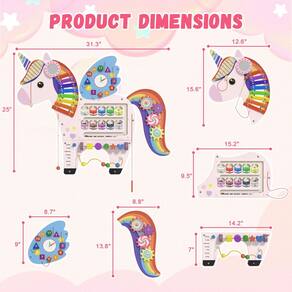- CONJUNTO DE 5 PAINÉIS E 9 ATIVIDADES: apresenta engrenagens clássicas, faixas deslizantes em ziguezague, instrumentos de percussão, xilofone, espelho, combinação de formas, labirinto magnético de cores e números, aprendizado de relógios e contas espirais coloridas para diversão e entretenimento sem fim