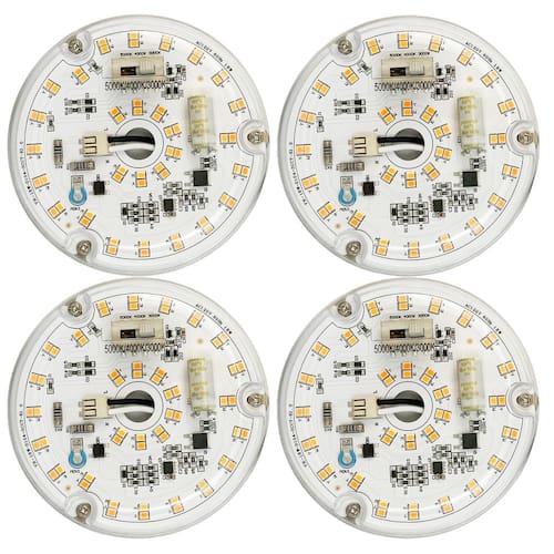 Kit de luz de ventilador de teto de 10 cm, pacote com 4 - ?Brilho e eficiência energética?4 polegadas, 18 watts. mais de 50.000 horas, qualquer problema para substituição - ?Temperatura de 3 cores e regulável?3000K-4000K-5000K. Capacidade de escurecimento suave de 100-5% (compatível com a maioria dos reguladores de LED, reguladores de LED não incluídos) - ?Proteção ocular?Design óptico antirreflexo, CRI>92 - ?Fácil de instalar?Parafusos e fios conectados em poucos minutos. Ímã forte, com parafusos, forte e de segurança - ?Ampla aplicação?Esta substituição de luz de ventilador de teto LED é adequada para a maioria dos kits de luz de ventilador de teto LED integrados e luzes de teto sem lâmpada. Perfeito para casa, garagem, depósito, bancada, porão, embaixo do armário, escritório, hotel, escola, loja, clínica.