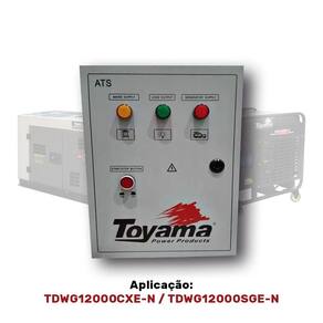 Painel ATS Monofásico ATS12M Toyama 220V, com cabo de conexão, apto para operar com SmartGen, detecta a interrupção ou a falta de energia elétrica e envia sinal de acionamento ou desligamento do grupo gerador TDWG12000CXE-N ou TDWG12000SGE-N, que assume ou cessa, então a alimentação da carga requerida.