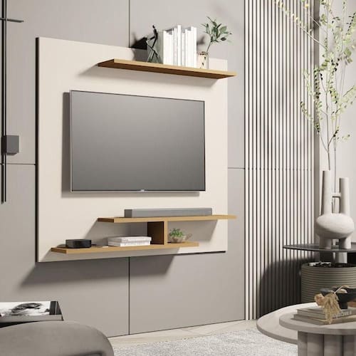 O Painel Bailônia é ideal para quem busca modernidade, praticidade e um excelente aproveitamento de espaço na sala. Com design elegante e funcional, ele oferece suporte para TV, prateleiras de apoio e nichos para organização, valorizando o ambiente com estilo e praticidade.