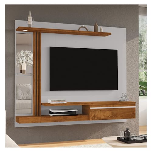 Com uma linha de produtos contemporânea, A Móveis Bechara trás produções incríveis com o que há de mais atual. O Painel Denver vai deixar sua sala em destaque, com o seu designer rico em detalhes como LED elétrico com botão liga/desliga, espelhos decorativos e 1 prateleira de vidro 6mm com suportes metálicos, combina linhas retas e ripas que oferecem ao móvel um estilo próprio. Indicado para TVs de até 55 polegadas, conta com 3 prateleiras, sendo uma de vidro, 1 nicho e 1 porta com dobradiças metálicas e puxador de MDF revestido. Seus espaços permitem acomodar diversos aparelhos eletrônicos, pertences pessoais ou objetos decorativos. Produzido em MDP com tampo e prateleira superior em MDP de 25mm, é um móvel resistente e durável.