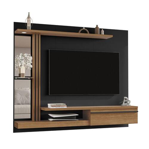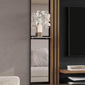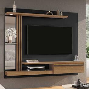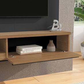 Sua estrutura conta com superfície central reforçada para fixação da TV, além de prateleiras e nichos que permitem organizar aparelhos, decoração e itens de uso cotidiano. Os detalhes usinados conferem personalidade ao conjunto, enquanto o visual clean garante fácil integração com diversos estilos de decoração.