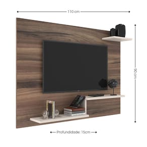 Painel Denver para TV 42 polegadas Branco, tem a sua altura 90 cm, comprimento de 110 centímetros e 15 cm de profundidade com prateleira de 15 mm. Adequado para renovar a sala de estar em sua casa.