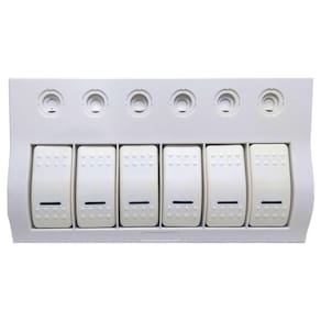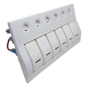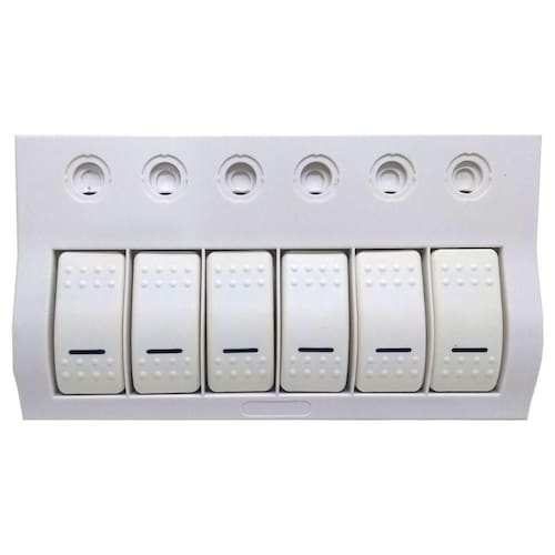 Painel Elétrico Em Plástico Branco 6 Botões Led Verde Painel Elétrico Em Plástico Branco 6 Botões Led Verde Em plástico na cor branco com led Verde e indicativo. Indicado Para Diversos Tipos De Embarcações. Painel De Alta Qualidade