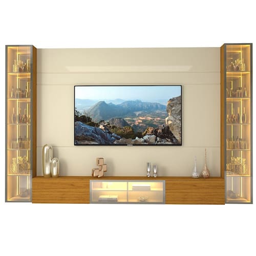 Estrutura: 100% MDFAcabamento: Pintura UV de alta resistência, que assegura durabilidade e beleza ao acabamentoPorta: Sim, 03 portas sendo a porta central em vidro reflecta com moldura de alumínio e dobradiças de 35 mm com amortecedor para fechamento suave e silencioso, Tecnologia “Push to Open” que permite a abertura das portas com um simples toqueLED: Sim, na cor branco frioSuporta: TV Compatível com TVS de ate 85”Torre Cristaleira