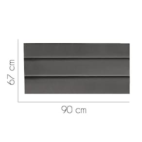 - Largura: 90 cm; - Altura: 67 cm; - Profundidade: 11 cm; - Produto estofado; - Produzido em Madeira de Pinus e Eucalipto; - Pés em pvc;