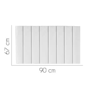 - Largura: 90 cm; - Altura: 67 cm; - Profundidade: 11 cm; - Produto estofado; - Produzido em Madeira de Pinus e Eucalipto; - Pés em pvc;