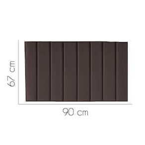 - Largura: 90 cm; - Altura: 67 cm; - Profundidade: 11 cm; - Produto estofado; - Produzido em Madeira de Pinus e Eucalipto; - Pés em pvc;